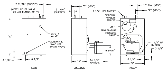 1 Boiler Model No. may have the following suffix letters: WPC = Water Package w/Burner & Circulator; WPCT = Water Package w/Burner, Circulator & Tankless Coil.